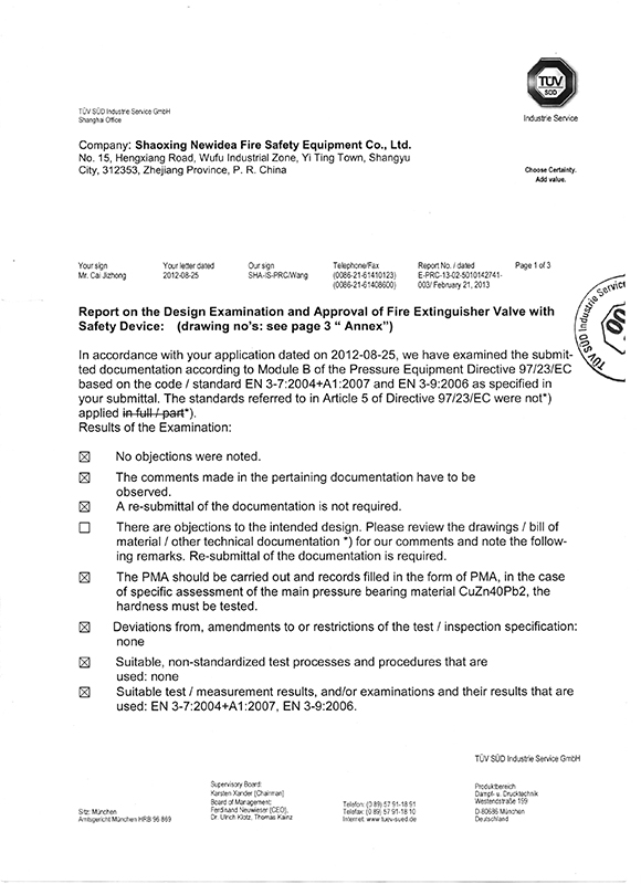 サプライヤー評価レポートshaoxing newidea fire Safety Equipment Co